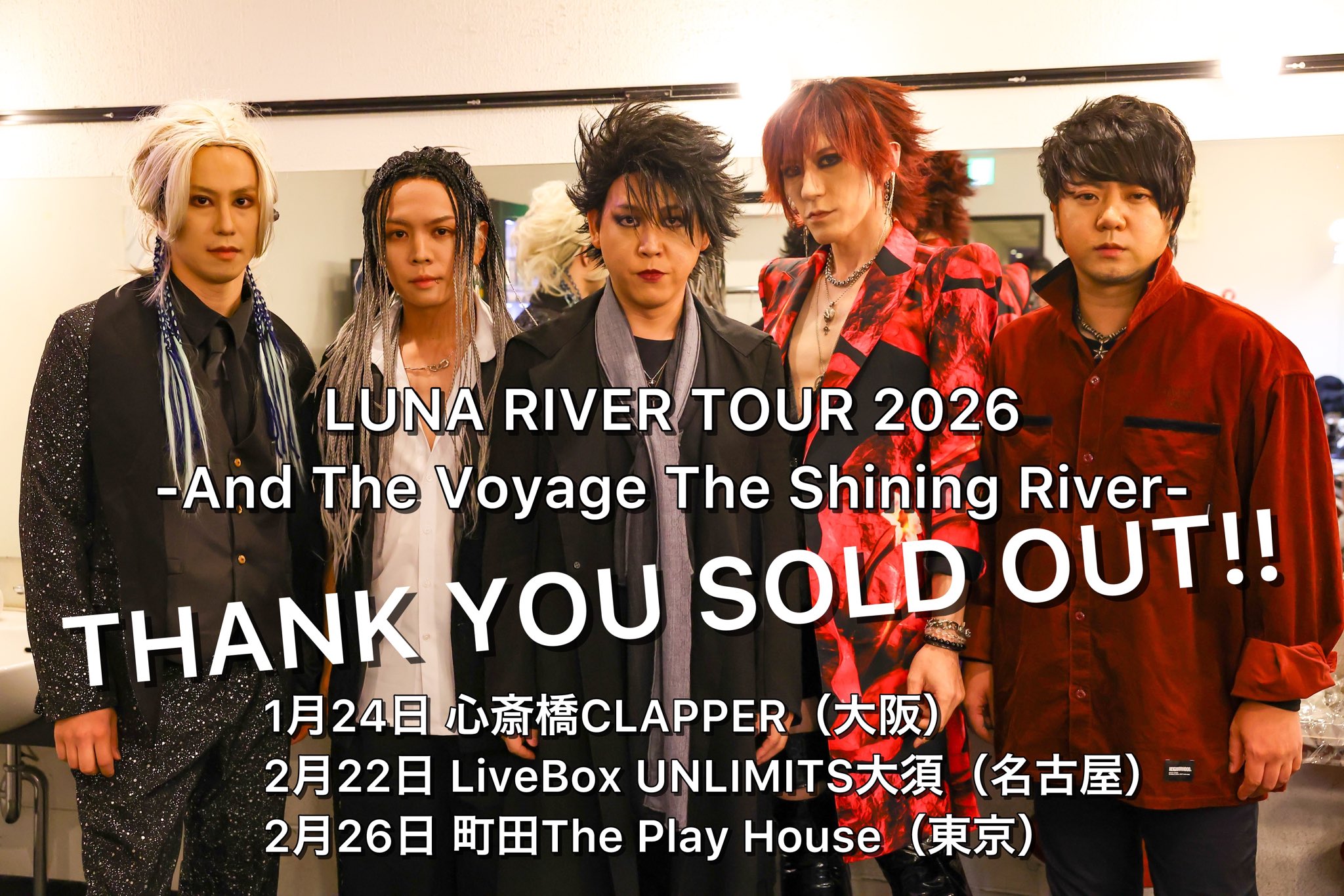 LUNA RIVERワンマンツアー 〜And The Voyage The Shining River〜 LUNA RIVER OPEN 16:30/START 17:00 RIVERシート¥8.800-/通常¥5,500-(1D別¥600-) SOLD OUT |